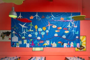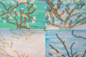 Dans toutes les classes, initiation à la peinture, aux œuvres d’art et aux différentes techniques de peinture, mais aussi à la musique.